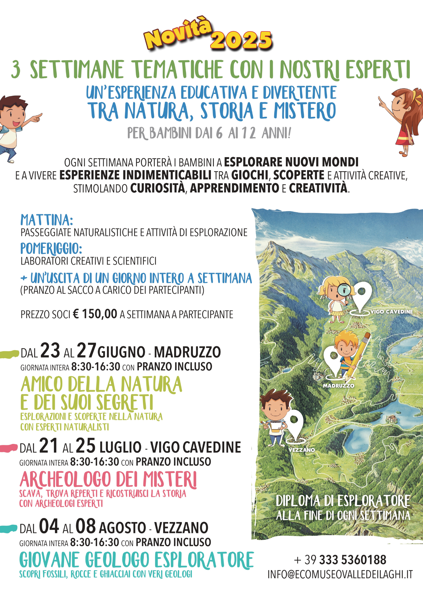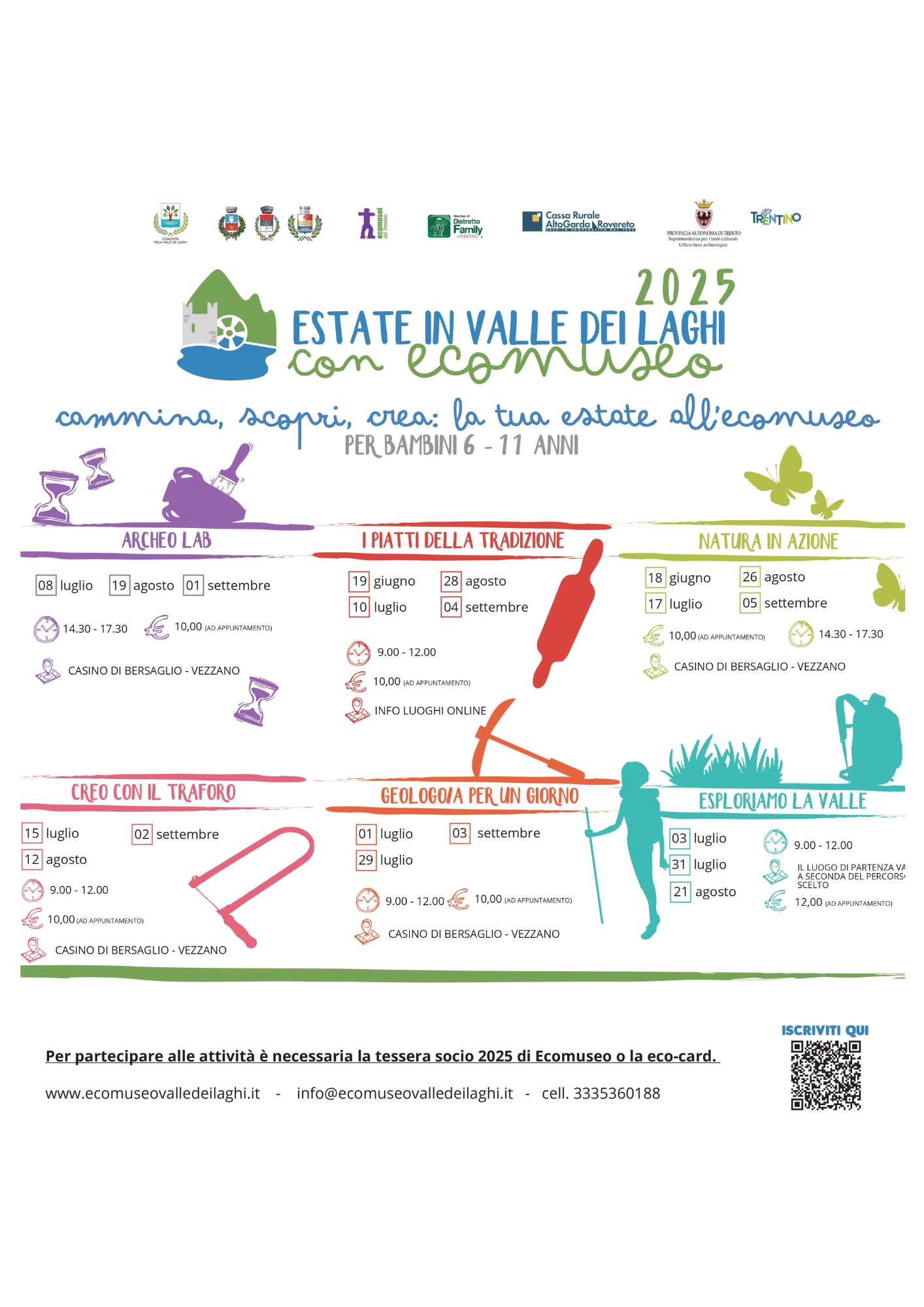 Sono state proposte anche quest’anno le attività di mezza giornata per bambini dai 6 ai 12 anni. Tra le varie proposte ci sono state “I piatti della tradizione” in collaborazione con i Circoli Anziani, “Esploriamo la Valle” con una guida e accompagnatore del territorio e i laboratori tematici.
