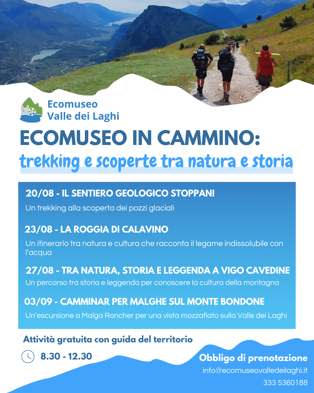L’Ecomuseo della Valle dei Laghi è felice di invitarvi ad una serie di nuovi trekking estivi, immersi nella nella natura e nella storia del nostro territorio!
