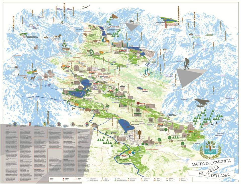 La Mappa di Comunità è uno strumento con cui gli abitanti di un territorio rappresentano il patrimonio, il paesaggio, i saperi in cui si riconoscono e che desiderano trasmettere alle nuove generazioni. Evidenzia il modo con cui la comunità locale vede, percepisce, attribuisce valore al proprio territorio, alle sue memorie, alle sue trasformazioni, alla sua realtà attuale e a come vorrebbe che fosse in futuro; mira a illustrare, anche secondo una lettura “affettiva”, il modo in cui una comunità percepisce se stessa rispetto al proprio patrimonio, fatto di elementi visibili-materiali (come le architetture, i luoghi storici e naturalistici), ma anche di conoscenze, di memoria, sapere e cultura.